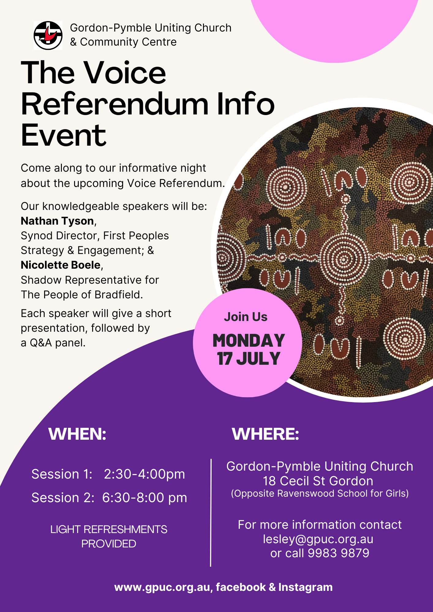 Gordon-Pymble Uniting Church is holding two information sessions on the Voice referendum. Nicolette is a guest speaker at this event hosted by Nathan Tyson, Synod Director, First Peoples Strategy and Engagement.